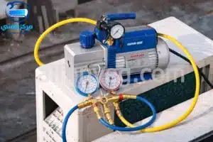 الفاكيوم هو سحب الهواء والرطوبة بالكامل من داخل مواسير التبريد باستخدام طلمبة فاكيوم قبل فتح الفريون وتشغيل الجهاز.